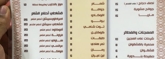 مطعم أحلام الشام الأسعار المنيو الموقع كافيهات و مطاعم الرياض