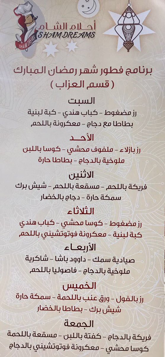 أسعار منيو العوائل مطعم احلام الشام فيسبوك